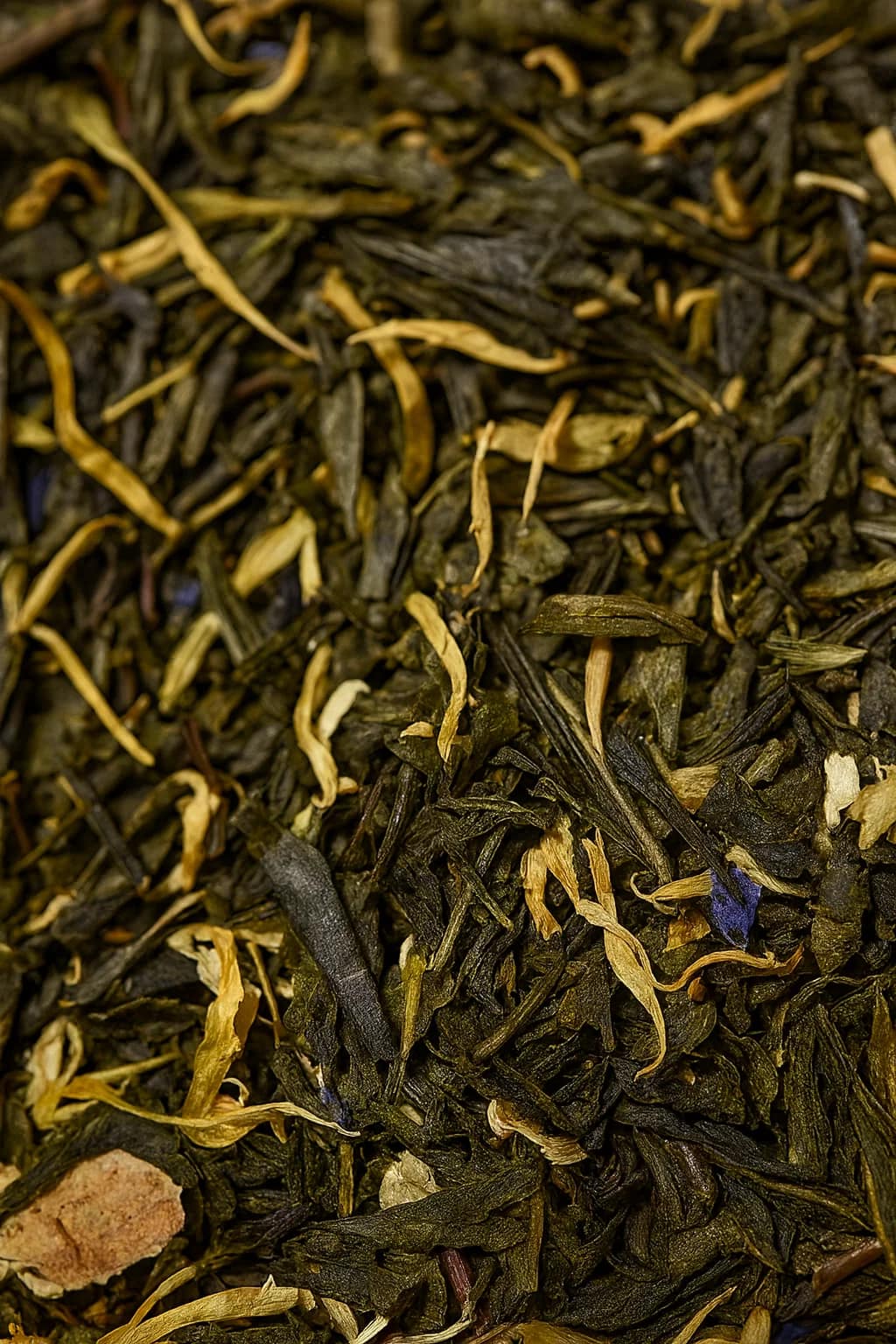Composition Thé Vert Premium « Toujours de Bonne Humeur » : Thé vert de Chine Sencha*, écorces d’orange*, arôme naturel, souci*, fleurs de bleuet*, pétales de rose*, bourbon vanille*.*Issu de l’agriculture durable.